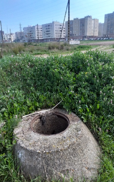 He encontrado este pozo sin tapa. Profundidad sobre 6 mts sin pates de escapada. Se ubica en colector que baja de edificio Orión en Francisco Guerra hacia el rio y cercano a solar del mercadillo de los martes.