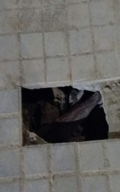 Agujero en plena acera en el parque bioclimático (bar las banderas)