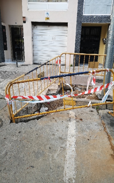 Este agujero que hicieron para una avería de saneamiento lleva más de 2 meses así, ocupando media entrada del garaje