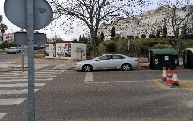 Hay una plaza de aparcamiento a continuación de unos contenedores y justo antes de un paso de peatones que quita totalmente la visibilidad cuando hay un coche aparcado. Esta situado en la avenida de las Vaguadas en cuesta abajo, donde los coches van muy rápido y no ven al peatón hasta que están casi encima
