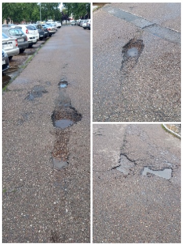 Hay grandes agujero que dificultan el paso de coches, motos y bicicletas en los aparcamientos de al lado del pomodoro