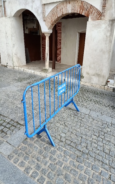 valla frente al Arco del Peso de la Plaza Alta, que da mala imagen al ser innecesaria (hay bolardos en la calzada a pocos metros de distancia)