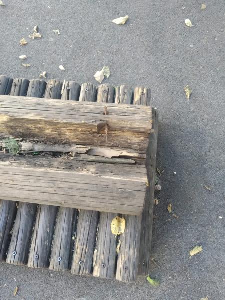 La zona de los columpios (tren de madera) está con mucho deterioro, clavos oxidados salientes, muchisimos insectos que se desprenden de los arboles (que parece ser que estan enfermos). Todo ello al alcance de los niños.