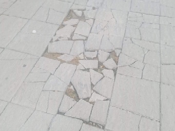 Reponer acerado que revientan los coches al entrar los vehículos, ya que no ponéis los bolardos que están aprobados y han vuelto a aprobar y parece que teneis miedo de hacer algo en estas zonas