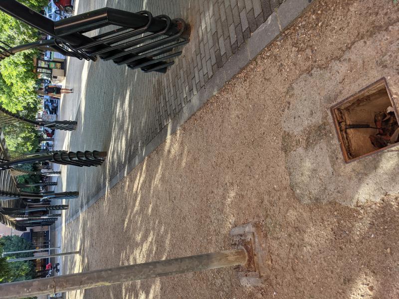 Falta tapa de registro de la farola dejando un hueco por el que cabe cualquier niño con pinchos y cables en el fondo. Algo muy peligroso