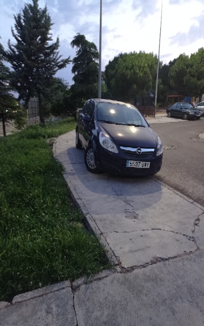 Este coche lleva así más de 1 semana, por aquí vive gente mayor que necesita andador o silla de ruedas y por ahí no puede pasar. Gente con carrito tampoco. ¿Tan difícil es pasar por aquí de vez en cuando y ponerle una multa para que no aparque ahí? Si no es este coche es otro.