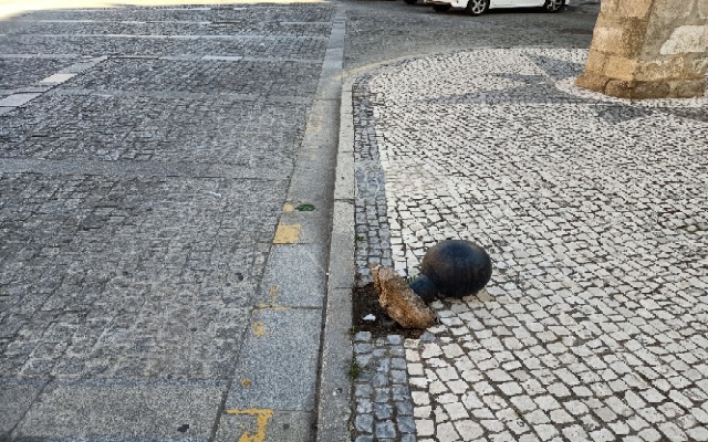 bolardo caído hace semanas. posiblemente porque lo ha golpeado algún coche
