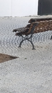 los señores que se sientan por la noche han roto un banco y han tenido la genial idea de ponerlo encima del otro,se ha solicitado la retirada de estos bancos en varias ocasiones por las molestias a los vecinos que provocan diariamente los vándalos .al menos que recojan el banco roto para que nadie se haga daño .