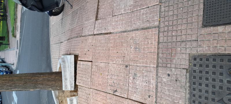 En la imagen puede verse el estado de la acera, totalmente levantada por las raíces del arbol, y si no estuviera la moto se vería un paso de peatones. ARRÉGLENLA o, al menos, pongan unas vallas para evitar tropezones y caídas. Es muy peligroso