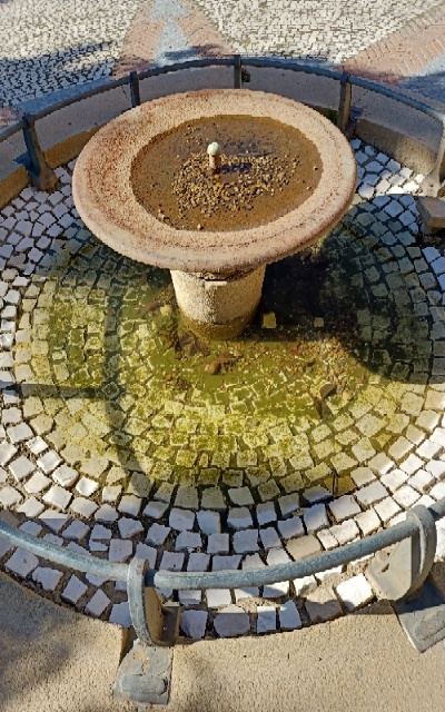 muestra estado de abandono la fuente frente al museo provincial, en la Alcazaba. La fuente no funciona y está sucia