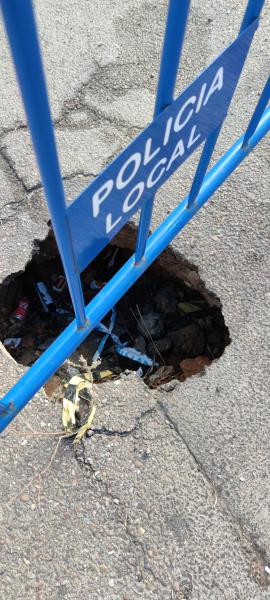 Bueno, después de un año seguimos con este agujero, que hasta que no haya una desgracia no lo solucionaremos, quitan las vayas por que dejáis una sobre puesta encima sin iluminar ni señalizar, de verdad una vergüenza. Ahora me volvéis a borrar la incidencia para que no conste.