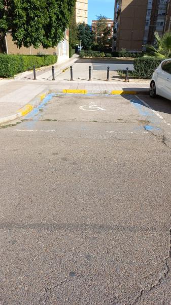 FALTA DE SEÑAL VERTICAL DE PROHIBIDO APARCAR , ZONA PARA MINUSVALIDOS, ASI COMO TAMBIEN UNA BUENA MANO DE PINTURA AZUL