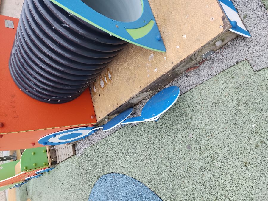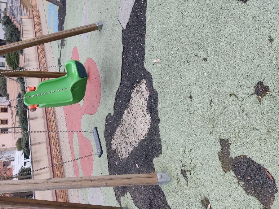 El mobiliario de juegos para los niños se encuentra en mal estado al igual que el suelo del mismo.