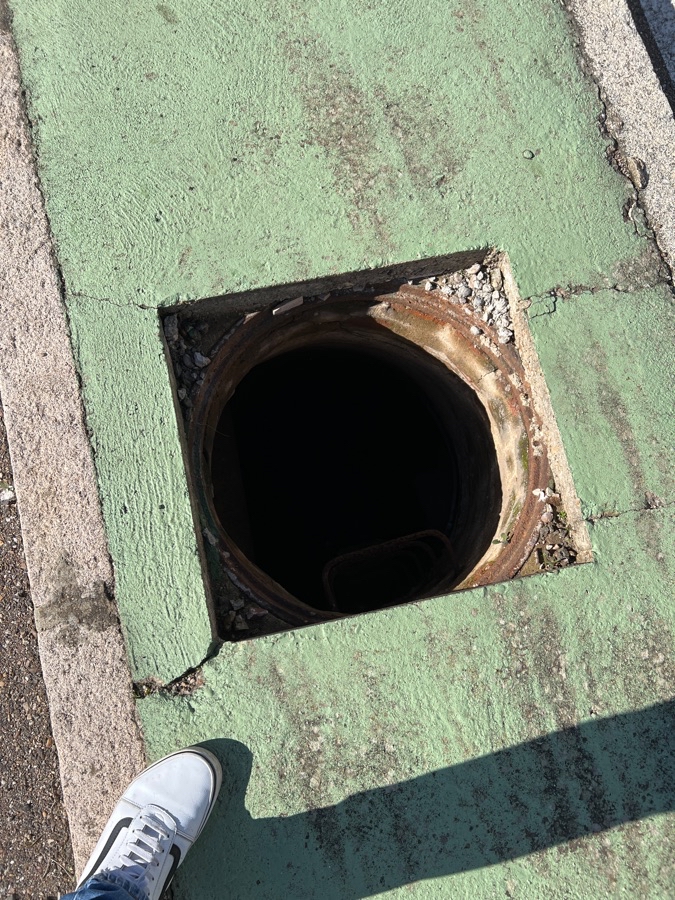Falta tapa y agujero profundo donde ensayan comparsas y hay niños