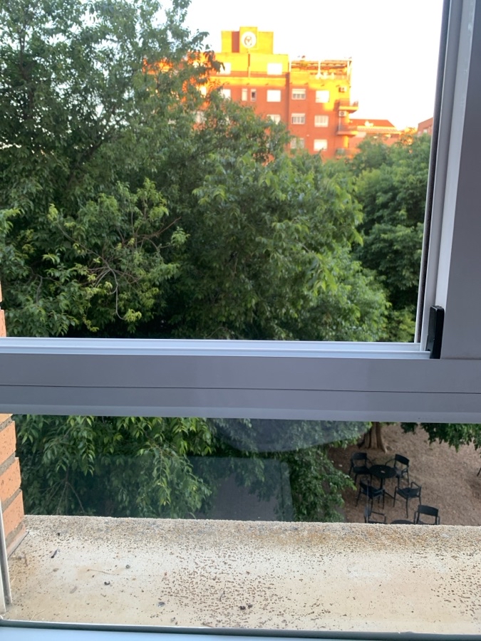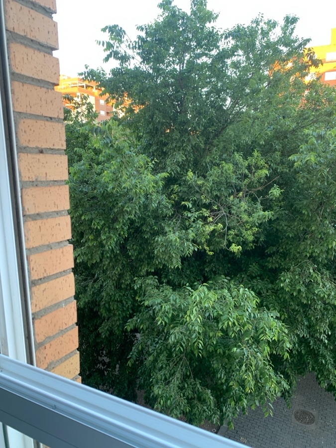 Gran volumen de ramas y hojas que llegan prácticamente hasta la ventana de los pisos. Demasiado molesto ya que los pájaros dejan sis excremento en las ventanas.