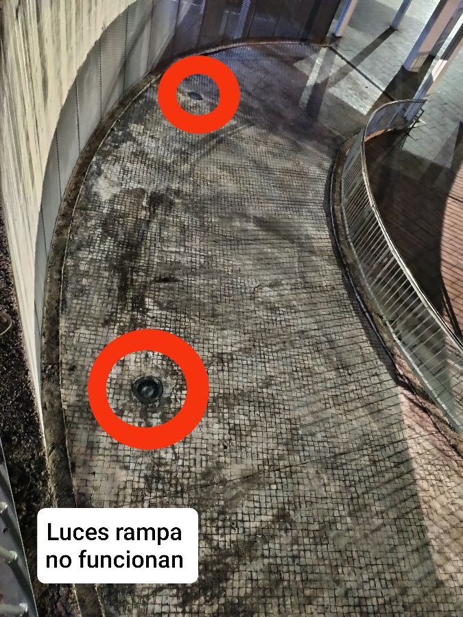 La iluminación de la plaza necesita una puesta a punto. La iluminación de la rampa circular no funciona (situada en el centro de la plaza). Los focos que deberían iluminar las palmeras tampoco funcionan. Tampoco funcionan los de la fachada de la asociación de vecinos situada en esa misma plaza. Solicito su reparación, muchas gracias de antemano.