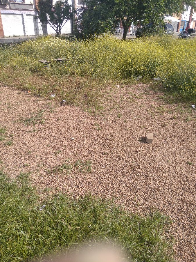 Todo lleno de hierbas y maleza, mobiliario infantil deteriorado