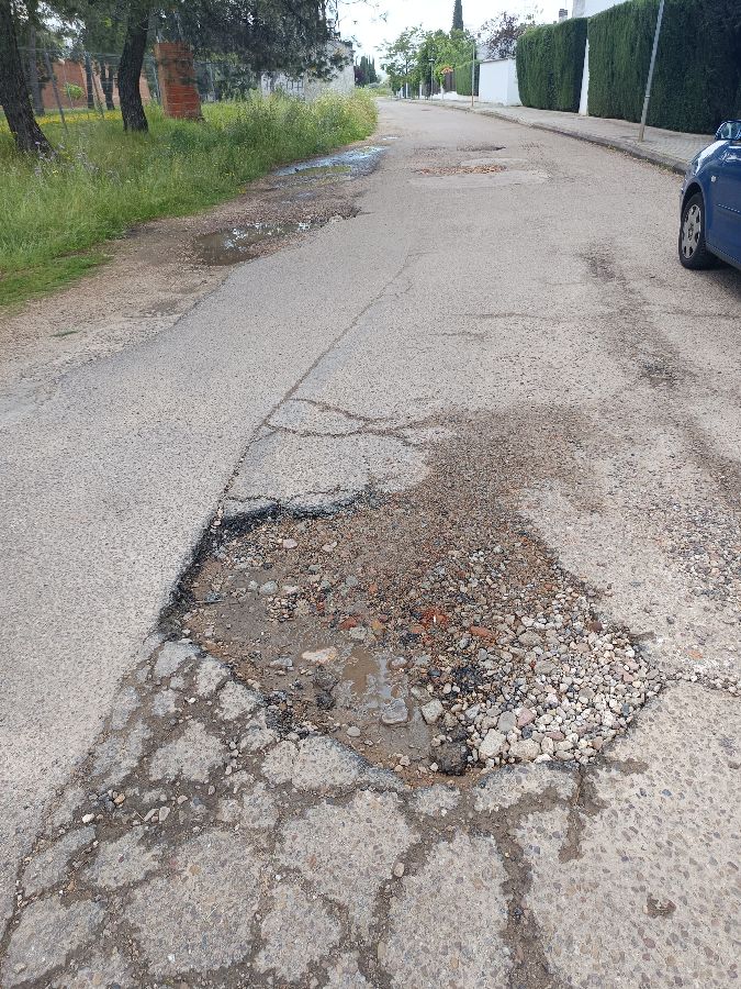 La calzada situada entre la universidad y la urbanización de al lado está en un estado lamentable. Los baches cada vez son más grandes y profundos, y las líneas de la calzada no son visibles. Solicito su reparación completamente muchas gracias.