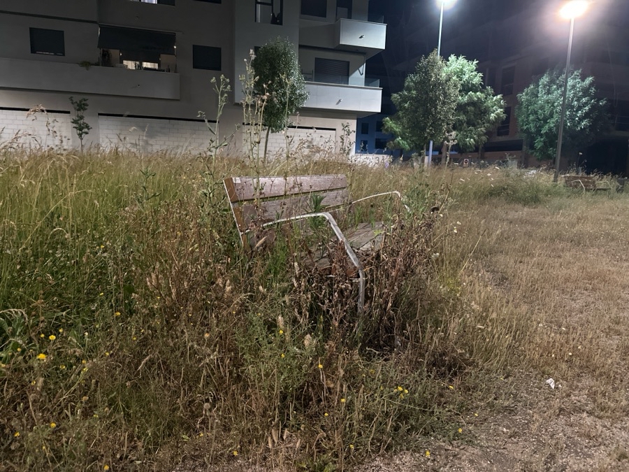La maleza mide ya más de un metro y medio, es imposible pasear por el parque y las aceras. Cuando pasas te pican los bichos. Hay basura tirada en el césped e incluso una rata muerta. Se abren incidencias y no lo solucionan. Es un barrio de nueva creación y está completamente abandonado.