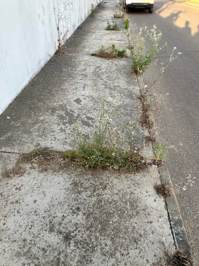 La vegetación impide el paso en partes del acerado