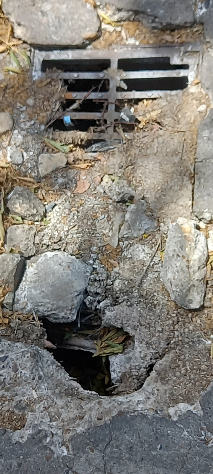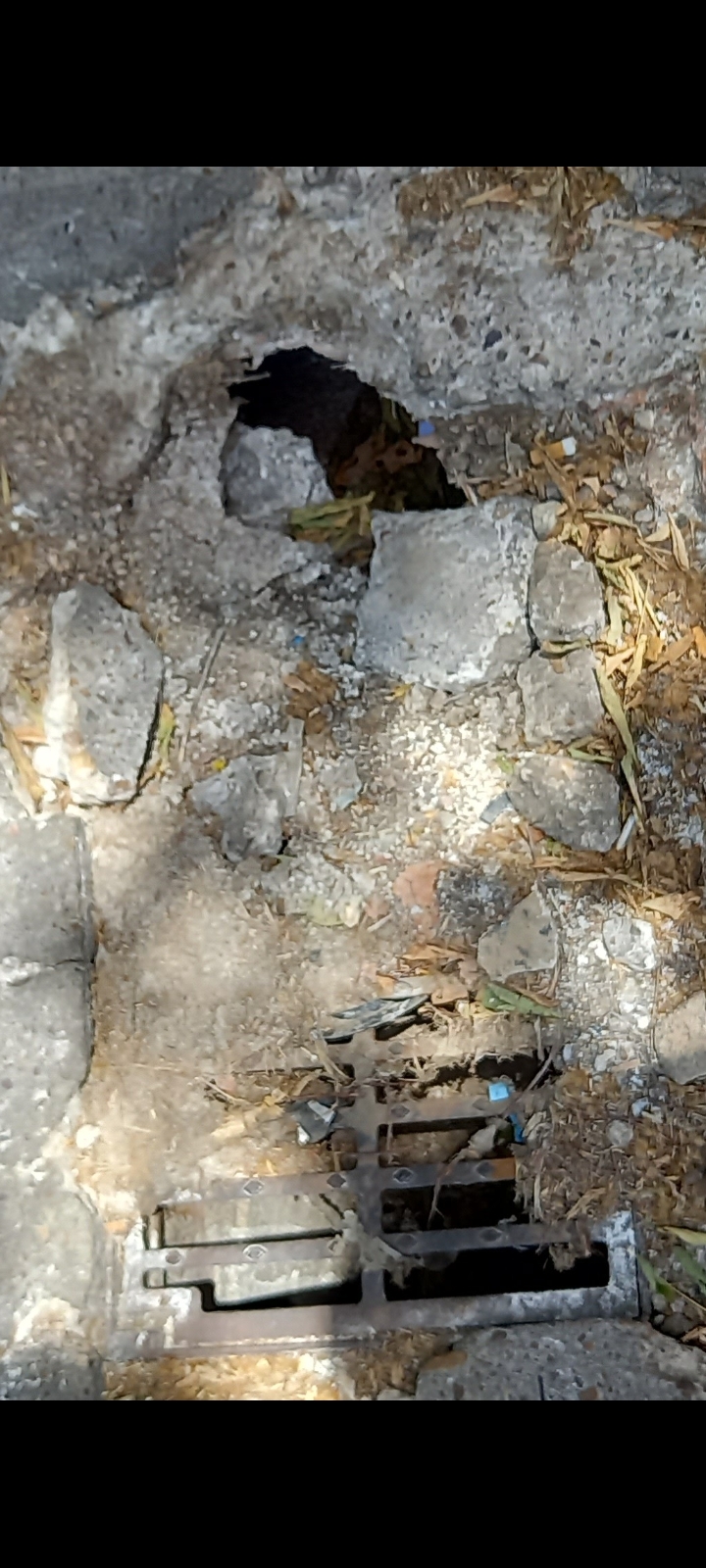 Tremenda peste la que sale por este sumidero hundido, en el que ya se ha hecho un agujero