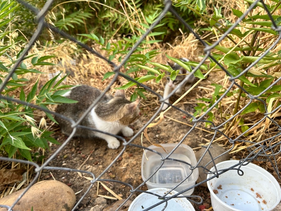 Familia de gatos sin castrar. Viviendo de los vecinos Pronto van a construir casas donde habitan y no sabemos qué hacer con ellos.