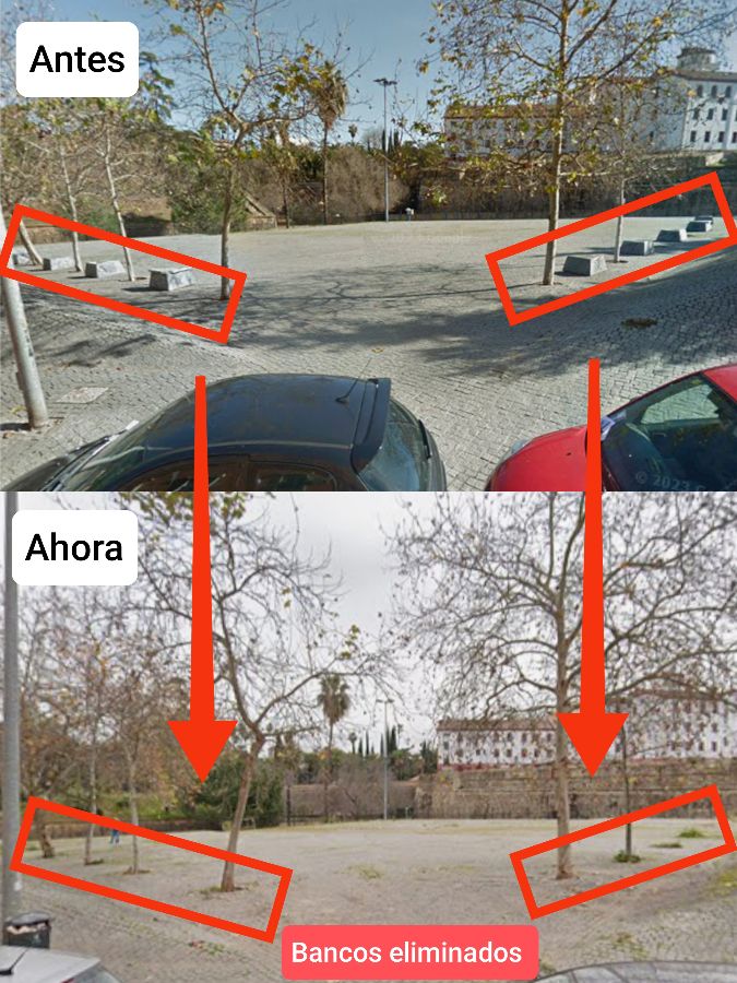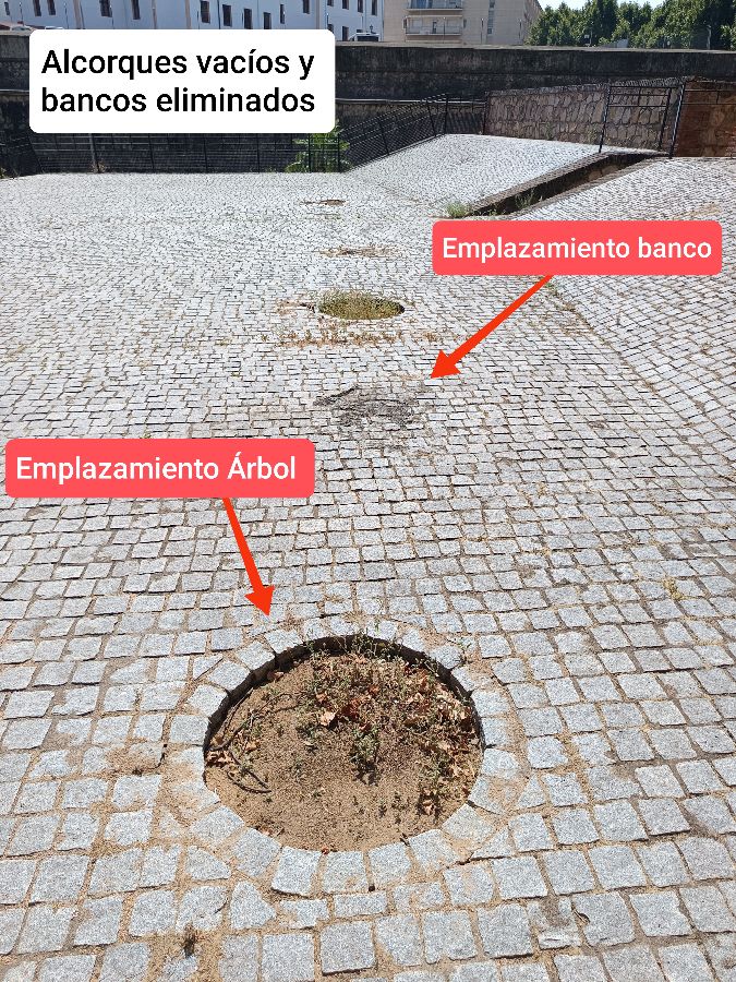 Este emplazamiento carece de los bancos de piedra, que fueron retirados hace años, y los alcorques de los árboles están vacíos. Solicito la colocación de los bancos de piedra y la reposición de los árboles de sombra. Muchas gracias.