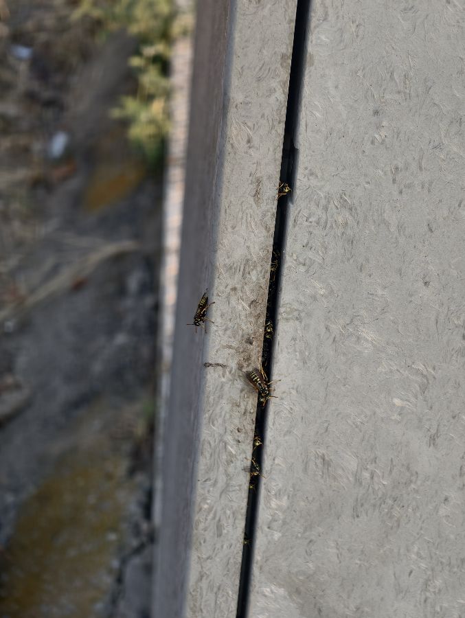 Avispero situado en caja de luz frente al centro de salud.