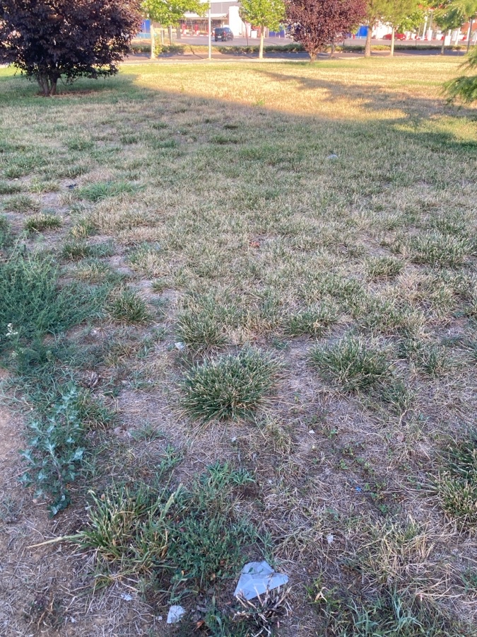 El riego en esta zona hace tiempo que no salta. El césped o pradera mejor dicho, se esta secando.