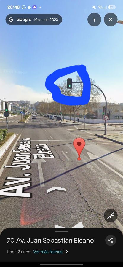 La luz verde del semaforo superior del cruce esta fundida Adjunto foto google maps ya que iba conduciendo y no pude fotografiarlo.