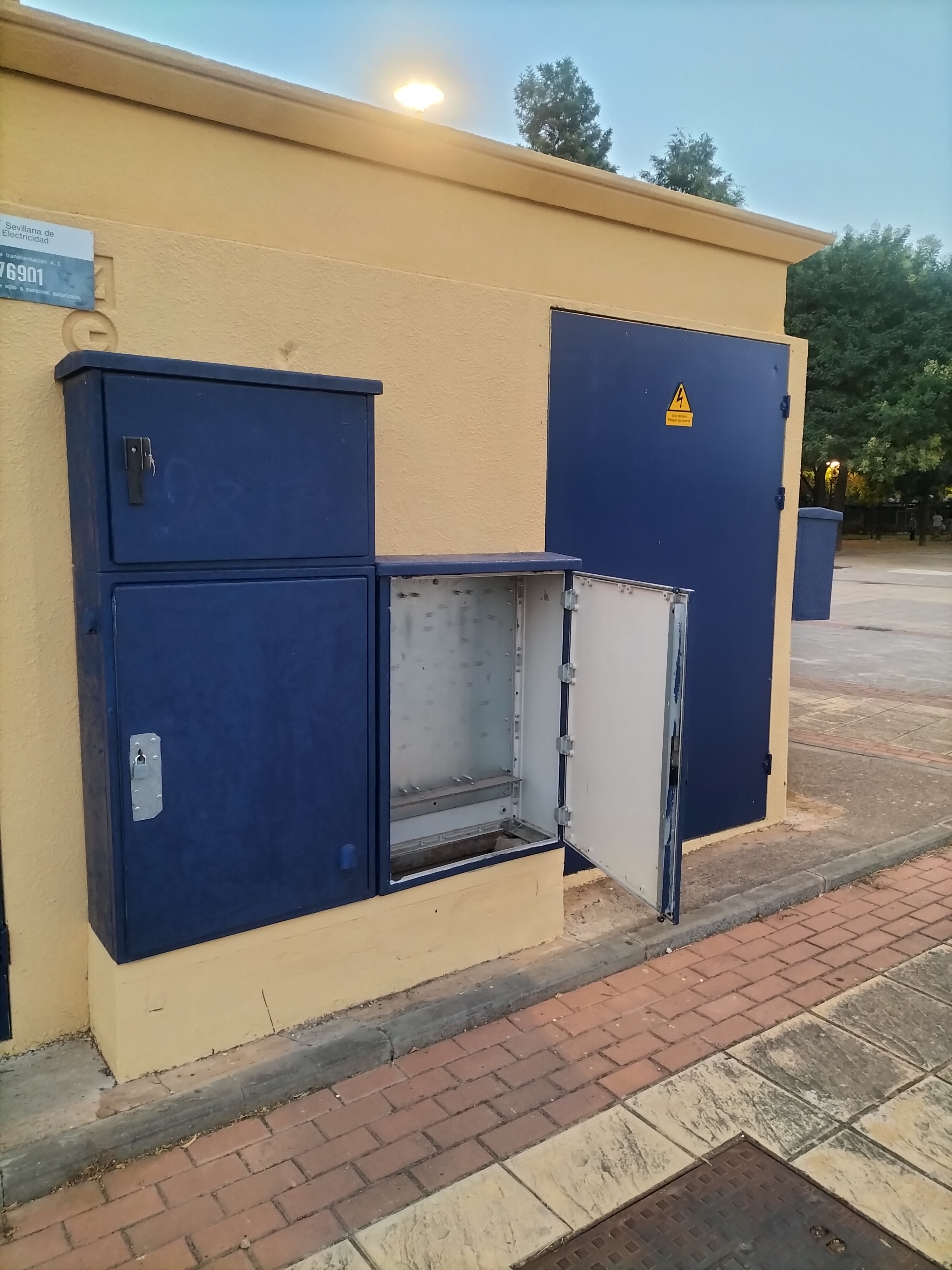 Cuadro luces abierto en parque donde hay niños jugando