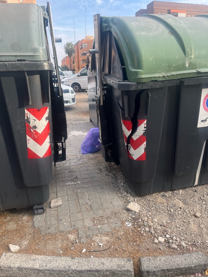 Contenedores en mal estado y rotos No se pueden abrir ni con la mano ni con el pie