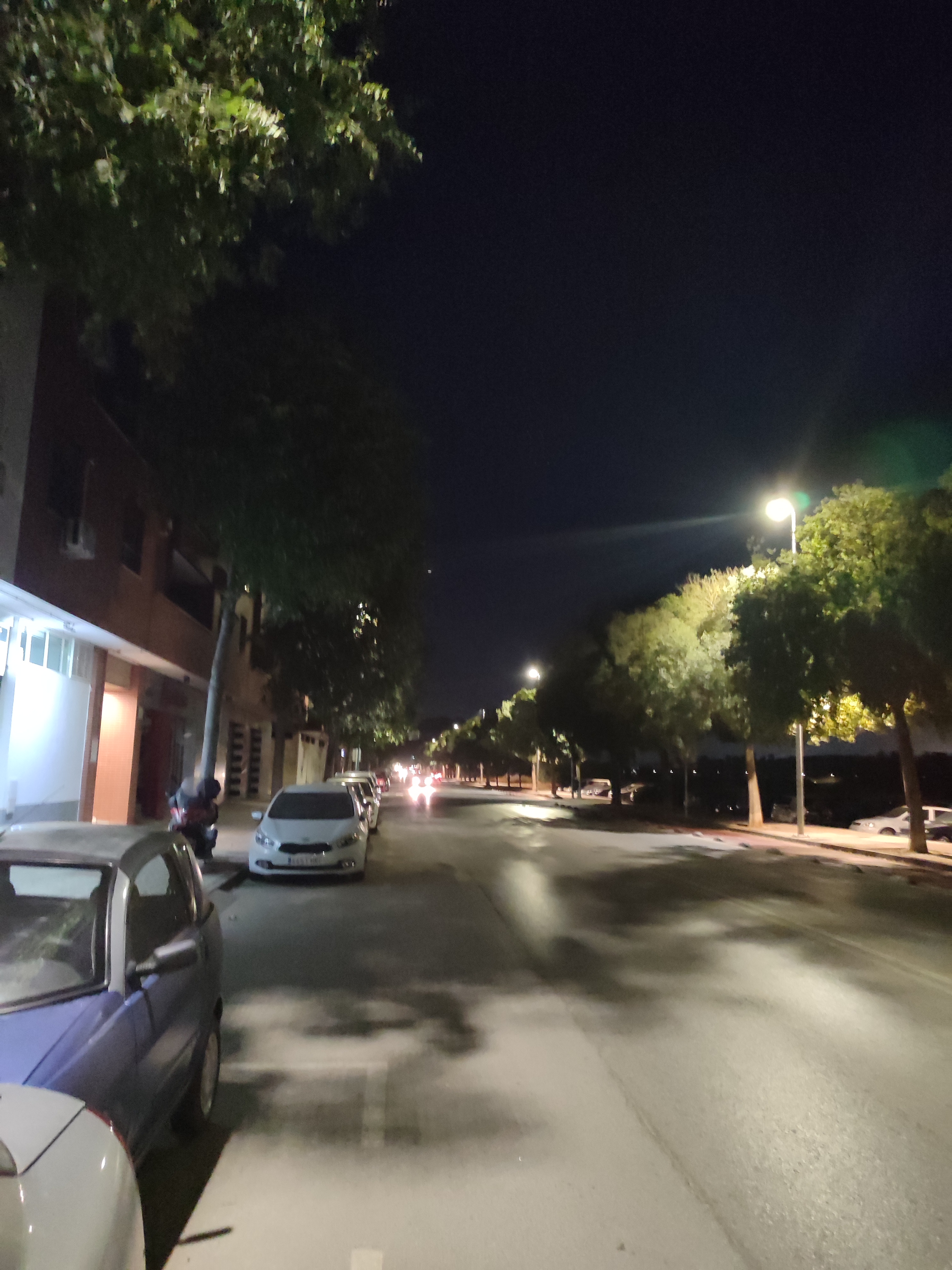 Las farolas instaladas no iluminan la vía al encontrarse en la misma linea que los árboles, al ser led proyectan la luz hacia sus ramas dejando la vía en penumbra, deberían de estar colocadas por debajo de la altura de la copa para iluminar parcialmente, la avenida está a oscuras aunque existan farolas