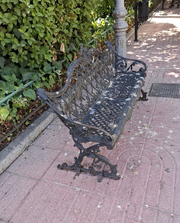 Muchos bancos como este hay que limpiarlos, lo mismo de la avda. De Huelva como.los del Paseo de San Francisco.