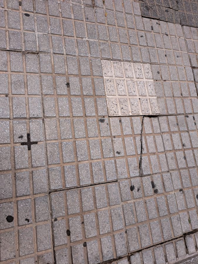 En el portal n°16 de la calle San Juan se Dios las baldosas del acerado están sueltas y rotas, ellos provoca tropezones y caídas y cuando llueve al pisar se manchan al escupir el agua. Solicitamos lo reparen antes de que lleguen las lluvias.