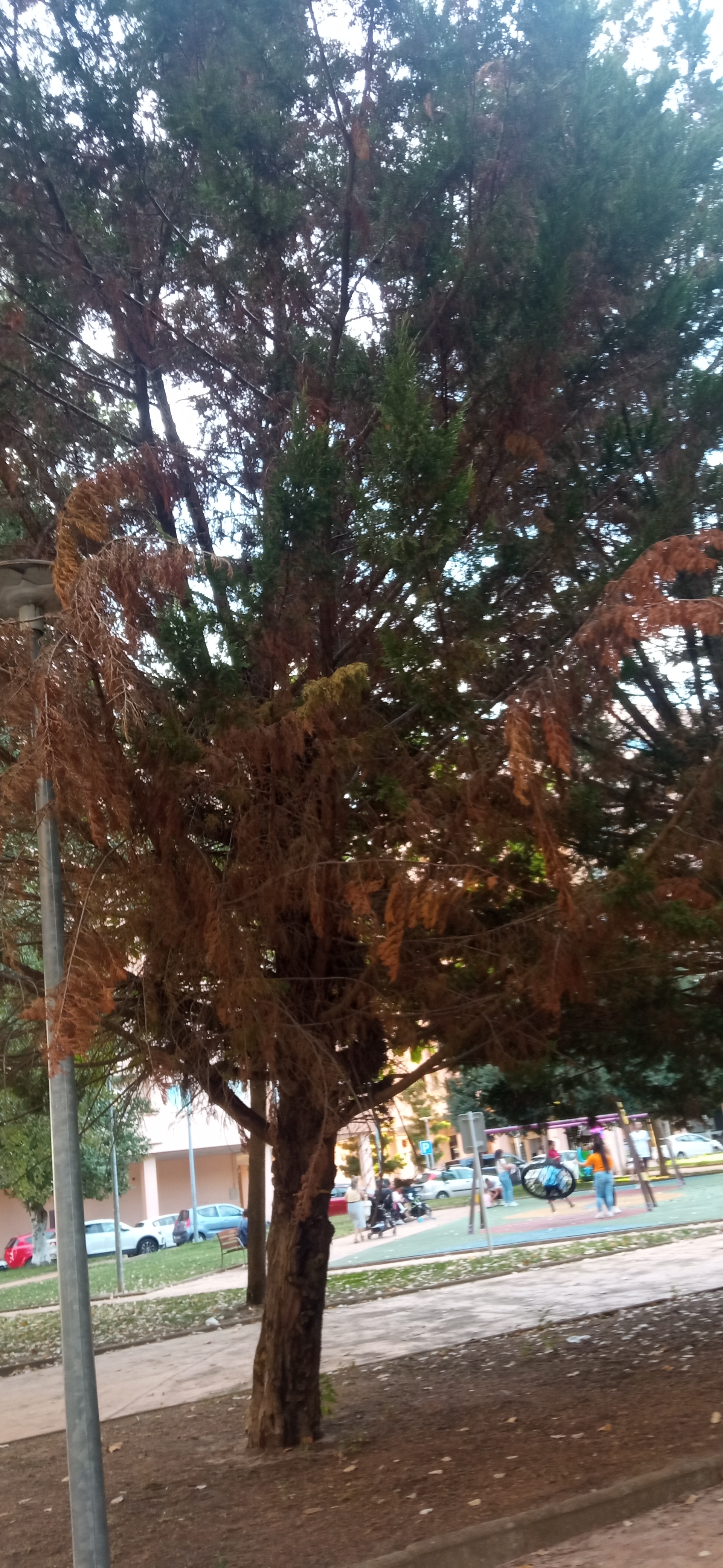 Ramas secas con peligro de desprendimiento para personas y animales en el parque de ciudad jardín