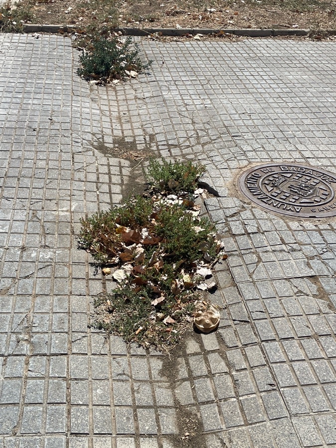 Baldosas rotas y sueltas, acera hundida, justo al lado de un parque y un instituto, con el riesgo que ello supone para los que pasan diariamente por allí