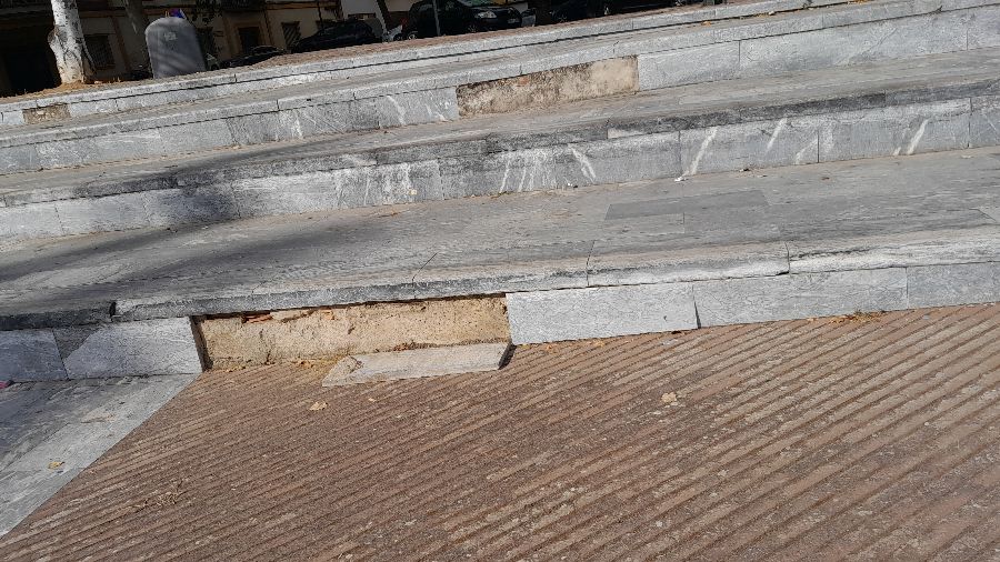 Baldosas caidas de escalones de la zona de" los cañones"