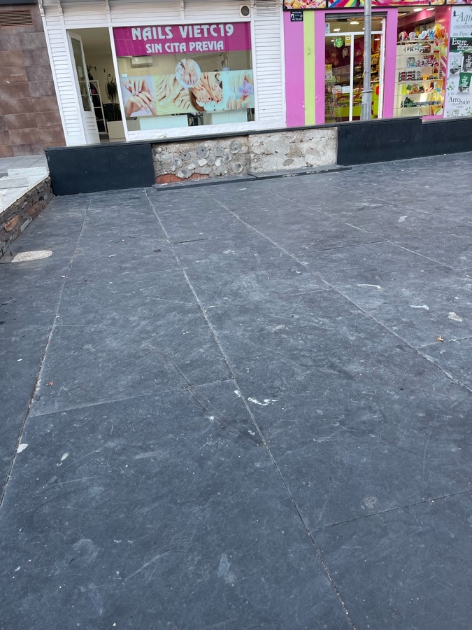 No sé cuánto tiempo llevan estas dos plaquetas en el suelo, una auténtica vergüenza y eso que es el centro de Badajoz