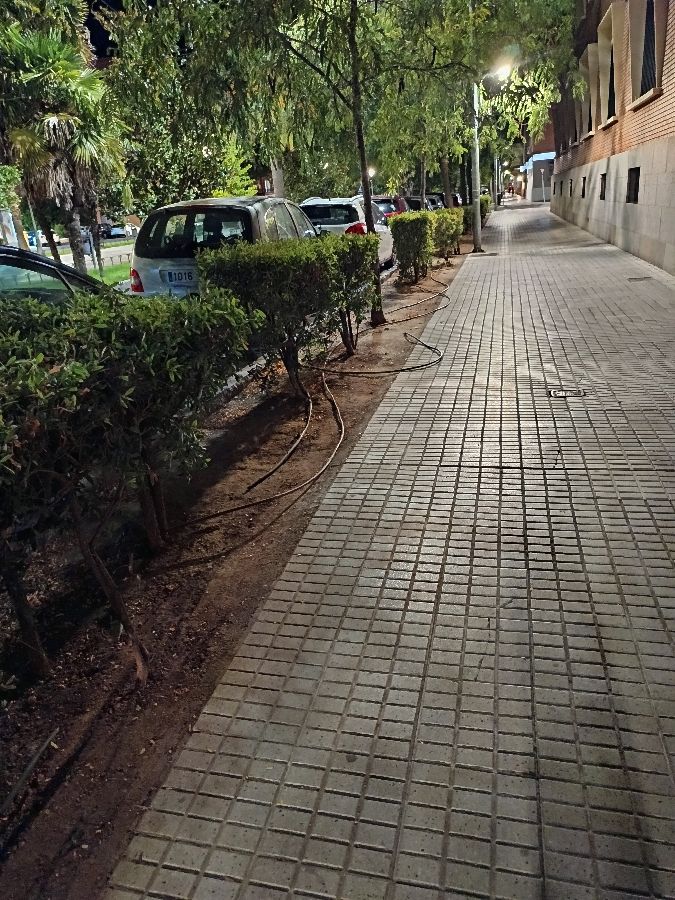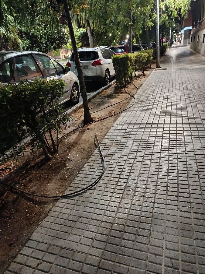 Las mangueras de riego de los arriates de la Avenida De Colón están destrozadas. Solicito la retirada de las rotas y la reposición por otras nuevas, a ser posible ancladas al suelo para evitar que las rompan. Muchas gracias.