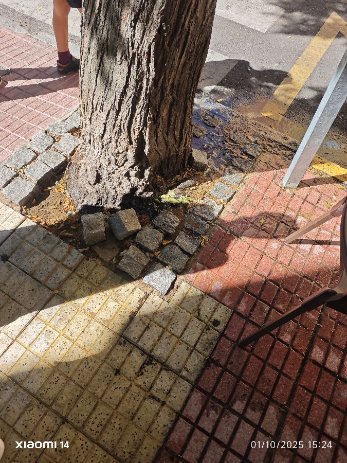 Sale agua potable de este las raíces de un árbol en la calle pardaleras enfrente de la pastelería tiempo de café