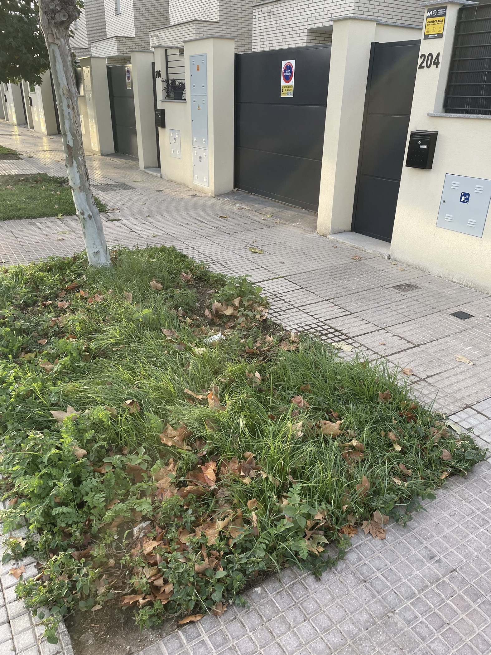 En torno a las 3:15 de la madrugada se escucha un fuerte borboteo de agua en la calle, supuestamente en horario de encendido del riego de las jardineras de la acera. Se ve que el agua brota con fuerza desde la jardinera indicada en la foto adjunta, encharcando y llenando de barro acera y calzada, llegando incluso a viviendas aledañas.
