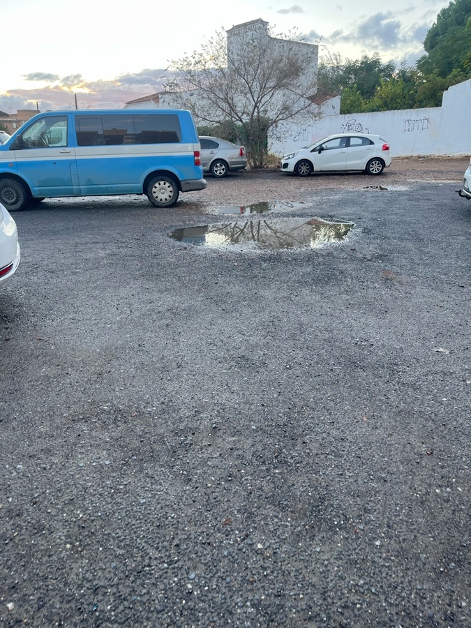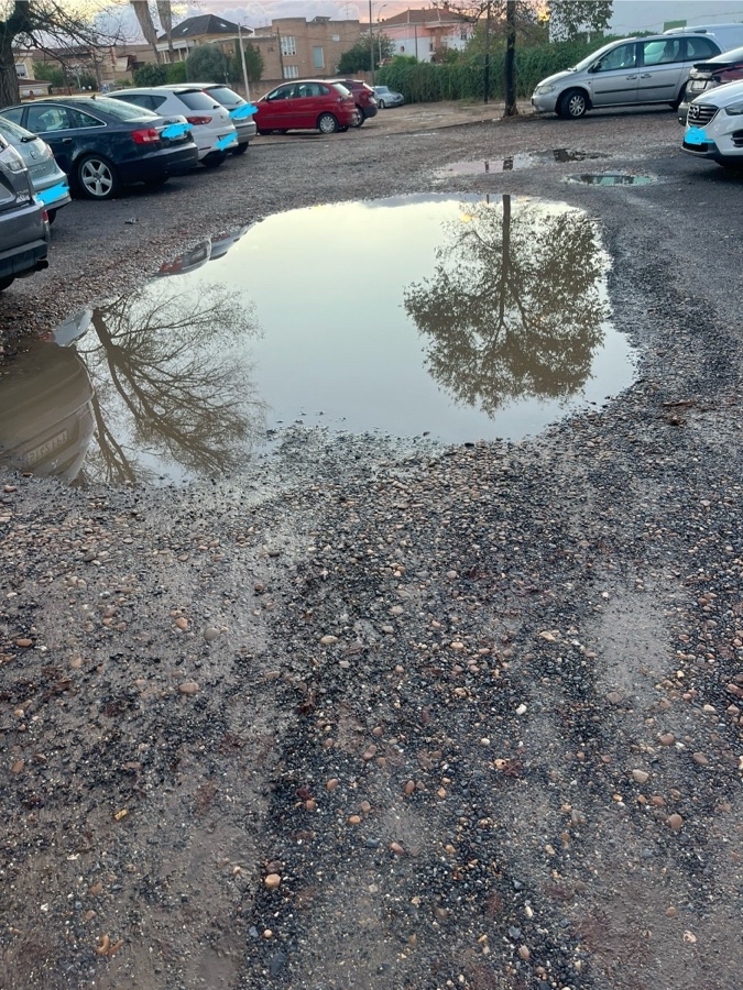 En Benito Pérez Galdós tenemos un aparcamiento que cuando llueve parece la 3º piscina de Badajoz, es imposible aparcar en ese sitio. Ya sé asfalto los aparcamiento que están al lado del bar pero estos han hecho la vista gorda… para cuando se van a arreglar ????