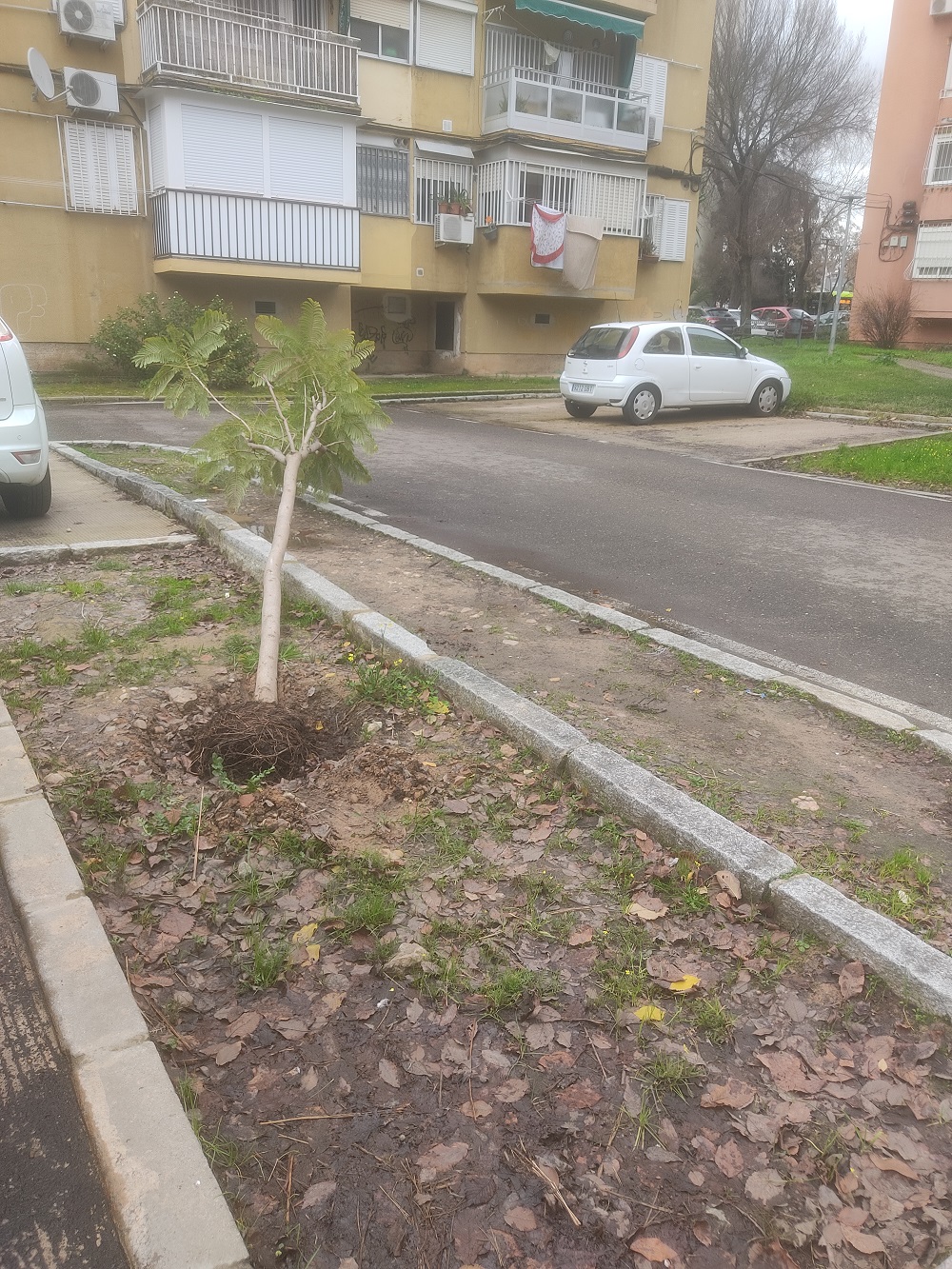 En plaza República de Chile en zona polígono de la Paz recién restaurada un vehículo ha derribado árbol plantado que de no replantarse pronto se perderá.