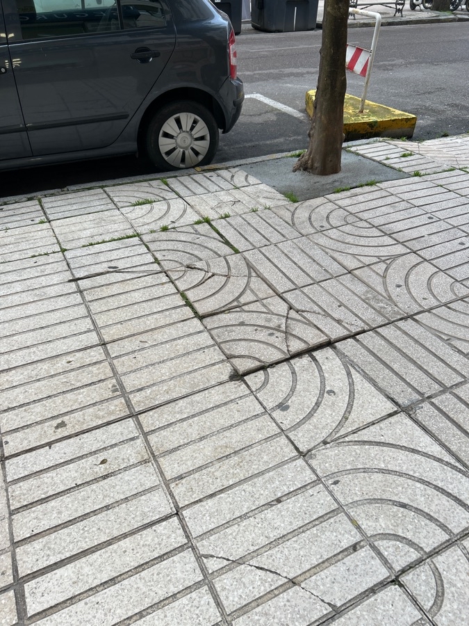 Acerado roto y con varias caídas de personas Necesitamos evitar más incidentes Está la calle entera en muy mal estado