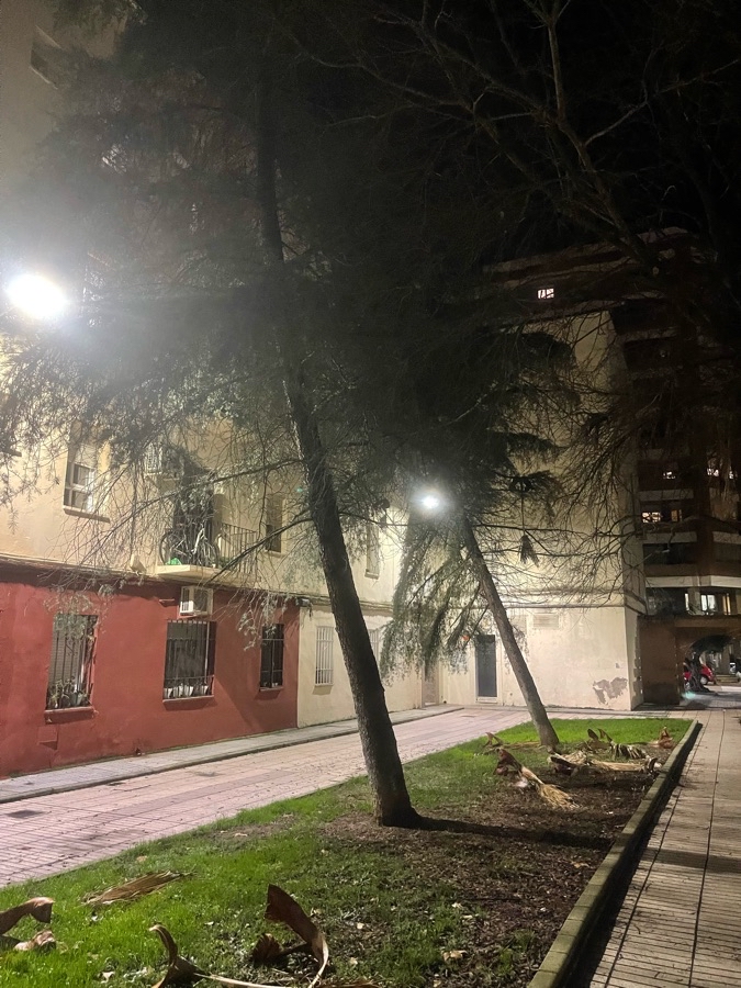 Varios pinos presentan una inclinación peligrosa y podrían caer, suponiendo un riesgo para vecinos y viviendas cercanas. Se solicita revisión y actuación municipal urgente.