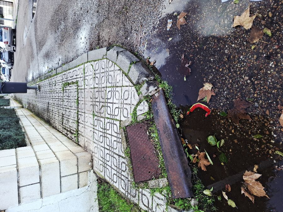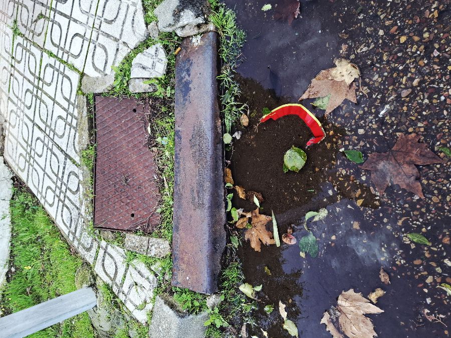 Imbornal cerrado por el paso del camión de basura por.encima a diario