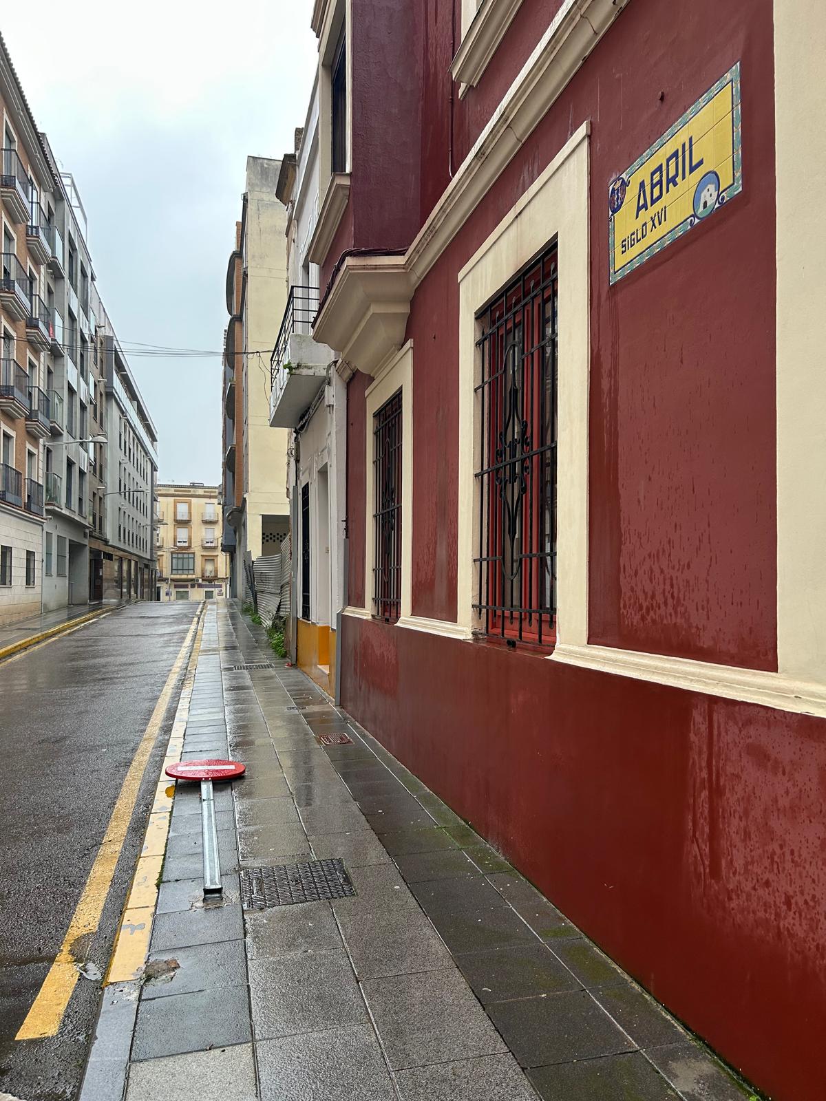 Señal de dirección prohibida en el suelo. Calle Abril, de plaza de Portugal a Calle Prim.