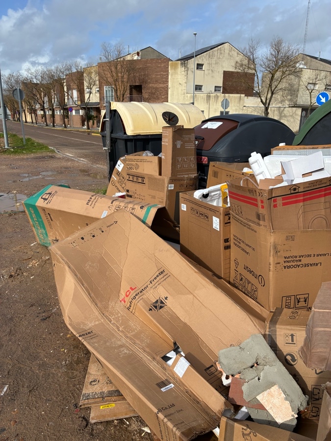 Embalajes de electrodomésticos impiden el acceso a los contenedores Y luego tienen los santos cojones de cobrarnos un impuesto por las basuras!!!! Hostias pedrin!!!!!