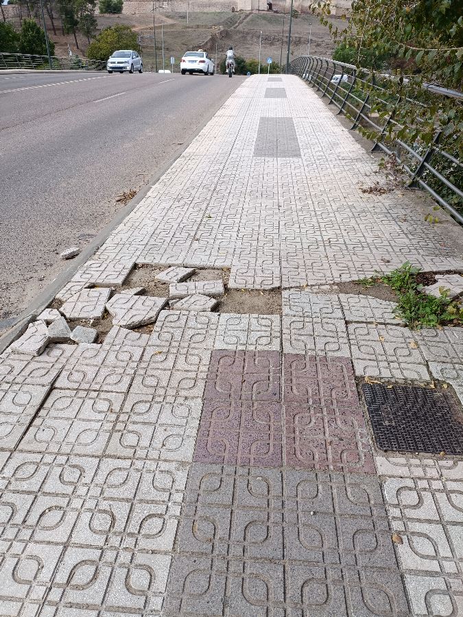 Si es difícil y peligroso caminar por esta zona con el acerado en mal estado sin tener minusvalía, imagínense pasar en silla de ruedas, con un cochecito de bebé, personas mayores. En ambos lados...